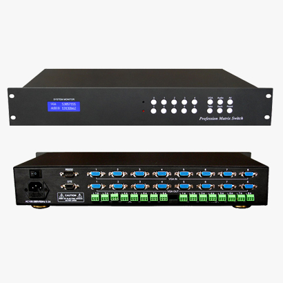 8進8出VGA矩陣,同步8進8出音頻矩陣輸出 紅外控制,面板按鈕控制 可擴展RS232控制、射頻控制