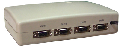 2 路VGA信號輸入,4 路分配輸出,其中?OUT1?為單獨臺式電腦輸出,避免了普通分配器切換到手提電腦輸入時臺式電腦顯示器只能顯示手提電腦內容的弊端,OUT2、OUT3、OUT4?為臺式電腦與手提電腦的切換分配輸出