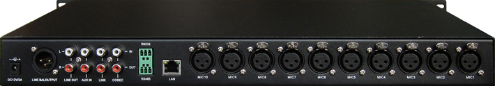 10路XLR,平衡/非平衡,最大輸入電平-18 dBV,輸入阻抗10KΩ |