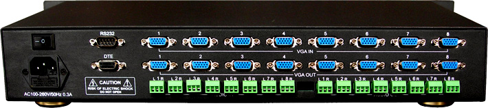 • 矩陣切換器均提供標準RS-232串行通訊端口,除了可以利用前面板按鍵進行切換操作外,還允許用戶使用各種遠端控制設備(如個人電腦、中控系統)進行遠端控制。