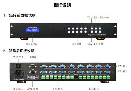 • 3.VGA矩陣模擬帶寬:250MHz(-3dB)支持各種分辨率的VGA顯示信號