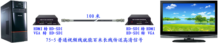 用HDMI轉HD-SDI,傳輸線纜采用普通視頻線,再由HD-SDI轉HDMI連接顯示設備(如投影機、大屏幕電視機、顯示器)是解決既要長距離傳輸又要達到高清圖像,不失為較好的解決方法。