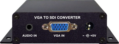 主要特點: ▲ 支持各種分辨率的VGA信號輸入 ▲ 將VGA信號無損轉換成SDI信號,最高支持達1080P/60Hz ▲ 二路SDI分配輸出,一路可以作為級聯(lián),延長輸出距離 ▲ VGA輸入信號自適應 ▲ 可以嵌入音頻信號到SDI ▲ SDI輸出可改變頻率和分辨率,適應不同顯示設備